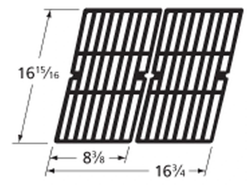 Set of 2 gas grill replacement cast iron cooking grates for some Charbroil model grills.