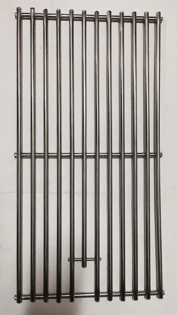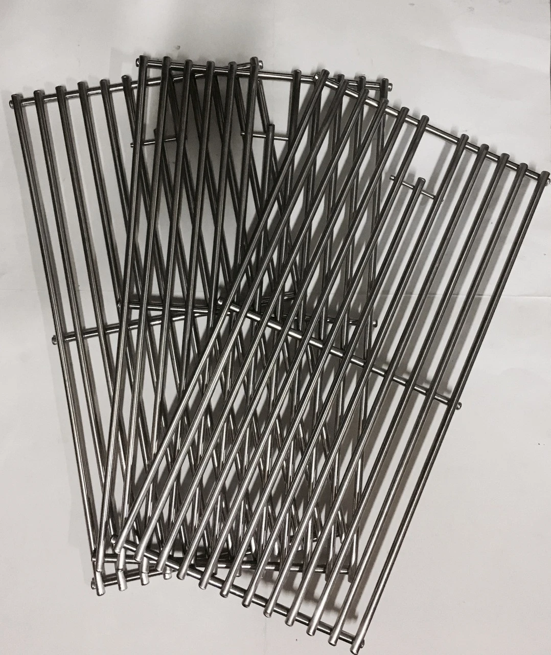 PLEASE NOTE : This product is made exactly like OEM production. It is tube in a tube construction. There is a rod of mild steel inside a stainless steel cylinder that is welded closed at the end. This gives the impression of a heavy and solid cooking grid, but only has a skin of stainless steel. We have received complaints of these becoming “out of square”. It happens when they are dropped in the box on their corner. The welds on the cylinder of stainless steel allow for a pivoting of the tines so they become out of square. Believe it or not, you can take the grid and strike the corner on a solid surface and knock it back square. The welds do not break.